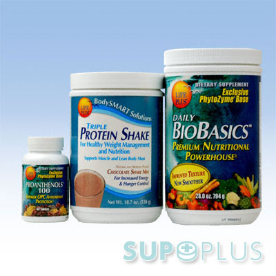 ライフプラス社の看板商品、デイリーバイオベーシックスとプロアンセノルズに、おいしいチョコレート味のシェイクをセットにしました。健康なからだの基礎をつくり、不足しがちなたんぱく質をしっかり摂ることができます。外食が多い方、食生活が不規則な方に大変おススメのセットです。あとはピンポイントで、ご自分の症状に適したサプリをチョイスしてください。