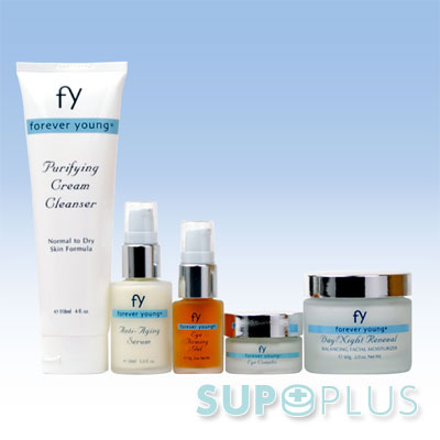 FYコンプリートセットにはFYピュリファイングクリームクレンザー、アンチエイジングセラム、アイファーミングジェル、アイコンプレックス、デイナイトリニューアルが含まれています。